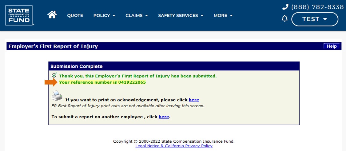 - Después de enviar su informe, recibirá un número de referencia que confirmará su envío. Nota: El número de referencia no es su número de reclamo. El número de reclamo se asignará una vez que se revise su envío y se cree su expediente.